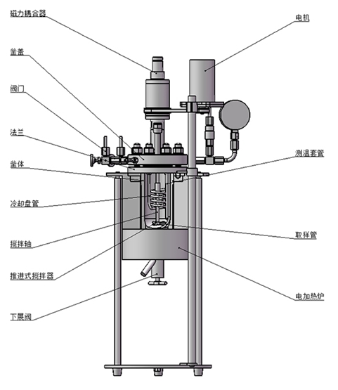 該結(jié)構(gòu)為環(huán)形磁力密封裝置,依靠兩組強(qiáng)力磁鋼異極相吸的原理通過磁場穿透密封罩體來實(shí)現(xiàn)力矩的無接觸式傳遞,由于電機(jī)經(jīng)過皮帶二級(jí)減速,故而其攪拌特點(diǎn)是大轉(zhuǎn)矩低轉(zhuǎn)速(≤750r/min),適合攪拌中高粘度(cp≥5000mpa.s)或固體顆粒含量較多的反應(yīng)物料介質(zhì)體系。